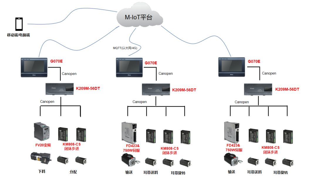 步科口罩機(jī)Plus方案,在CANopen總線伺服驅(qū)動(dòng)產(chǎn)品基礎(chǔ)上,迅速升級(jí)M-IoT物聯(lián)網(wǎng)遠(yuǎn)程運(yùn)維服務(wù),快速完善了設(shè)備報(bào)警和維護(hù)信息,增加了遠(yuǎn)程診斷服務(wù)功能,進(jìn)一步打通了現(xiàn)場(chǎng)、設(shè)備商和部件商的溝通渠道,幫助現(xiàn)場(chǎng)人員快速排查故障。