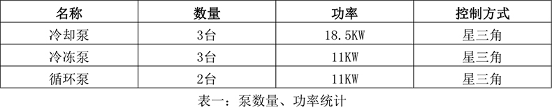 該系統(tǒng)設(shè)計之初,均沒有考慮冷卻泵、冷凍泵、循環(huán)泵采用變頻控制(如下表1),而是采用傳統(tǒng)的星三角啟動方式(舊電柜見下圖1),根據(jù)對系統(tǒng)運行工藝的觀察,泵總功率110.5KW,電能浪費嚴重,存在較大的節(jié)能空間。
