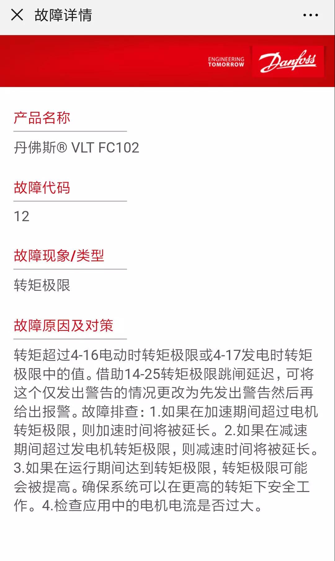 以上就是丹佛斯傳動全新的故障速查系統(tǒng),我們希望,通過新版的故障速查系統(tǒng),能更好得與客戶拉近距離,為大家提供有效、優(yōu)質(zhì)的服務。