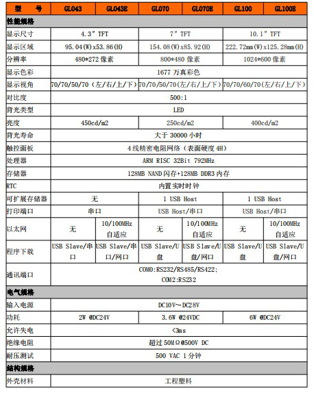 GL系列是Green系列旗下的經(jīng)濟型系列,目前推出3個尺寸:4.3"、7"、10.1",型號分別是 GL043、GL043E、GL070、GL070E、GL100E,GL系列是Green系列旗下的經(jīng)濟型系列,準確地提供了人機界面的標準功能,經(jīng)濟實用,具備高性價比,是您設(shè)備配置的首選型號。