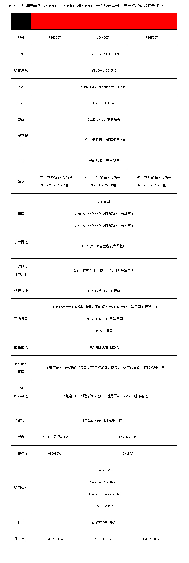 MT6000是步科電氣人機(jī)界面中的高端產(chǎn)品,其性能強(qiáng)大的intelPXA270520MHz處理器和界面友好的WindowsCE操作系統(tǒng),將給你帶來(lái)全新的使用體驗(yàn)。其開(kāi)放式的編程環(huán)境和強(qiáng)大的通訊能力使其非常適用于工業(yè)自動(dòng)化、樓宇自動(dòng)化和智能家居等應(yīng)用領(lǐng)域。