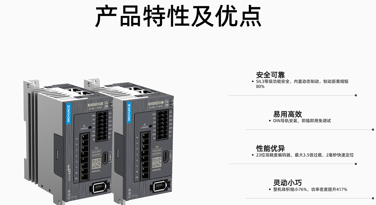 SVD60系列伺服驅(qū)動器是匯川技術(shù)研制的一款低壓直流伺服平臺,產(chǎn)品功率范圍為0.2kW~0.75kW,支持CANopen和EtherCAT控制方式,配合上位機(jī)可實現(xiàn)多臺伺服驅(qū)動器聯(lián)網(wǎng)運行。 該系列伺服適用于物流、醫(yī)藥、電子制造、鋰電、汽車、機(jī)床等行業(yè)的自動化設(shè)備,以小體積,高性能,更安全通用方案實現(xiàn)快速精確的位置控制、速度控制和轉(zhuǎn)矩控制。